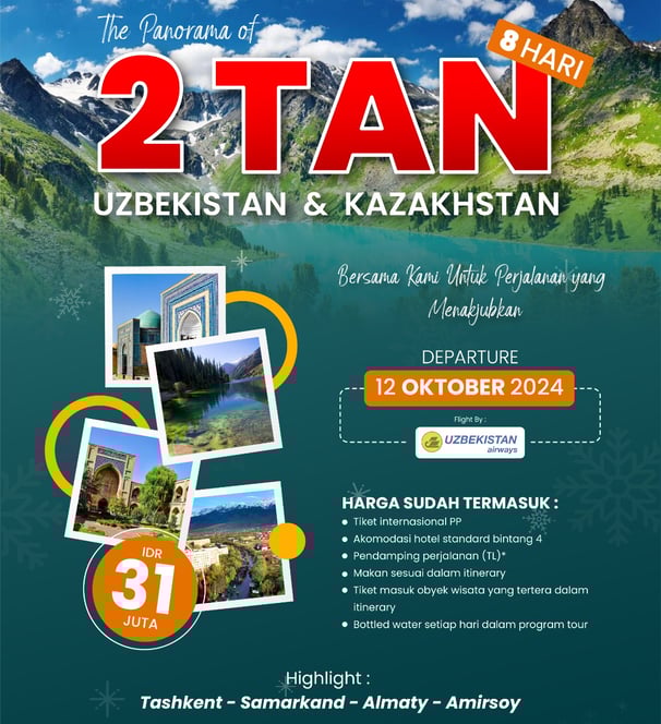 Perjalanan menikmati keindahan sejarah dan alam Uzbekistan dan Kazakhstan, dari warisan Islam di Tashkent dan Samarkand hingga panorama pegunungan Almaty.